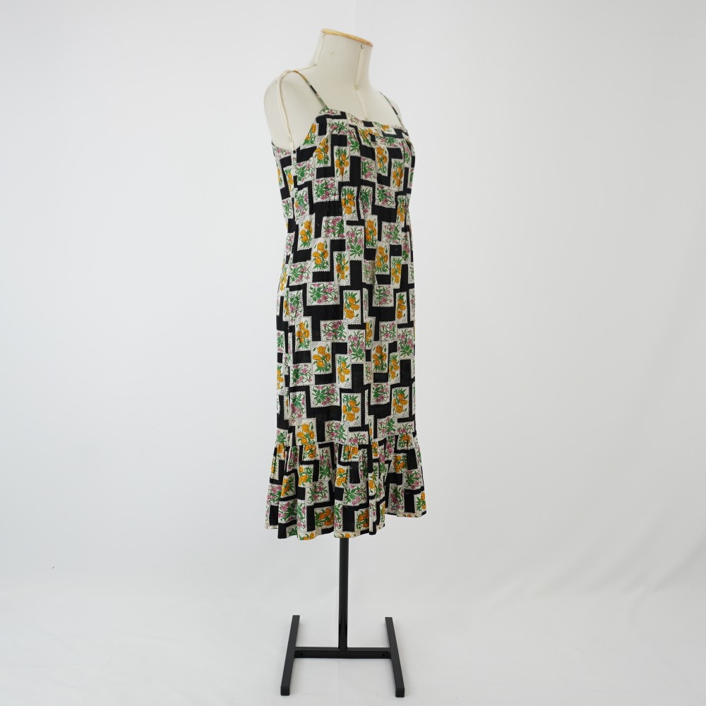 Vestido de selos Voltar U.LB.01.052 (1) U.LB.01.052 (2) U.LB.01.052 (3) U.LB.01.052 (4) Metadados Miniatura Compartilhe Número de TomboU.LB.01.052TítuloVestido de selosDescriçãoVestido midi de alças finas, estampado fundo preto com desenhos de selos retangulares brancos sobrepostos com flores rosa, amarelo, laranja e verde, escritos 6F e 4F. Modelagem evasê com barrado de babado, elástico embutido no meio costas.LocalizaçãoArara 003Quem vestiuLina Bo BardiDimensões do Item - altura x largura (cm)106 x 73Material/Composição do ItemTecido plano tela de algodãoEstado de ConservaçãoRuimData da Catalogaçãojaneiro 27, 2026 Continuar navegando Acessório com medalhão Túnica branca Voltar para a lista de itens