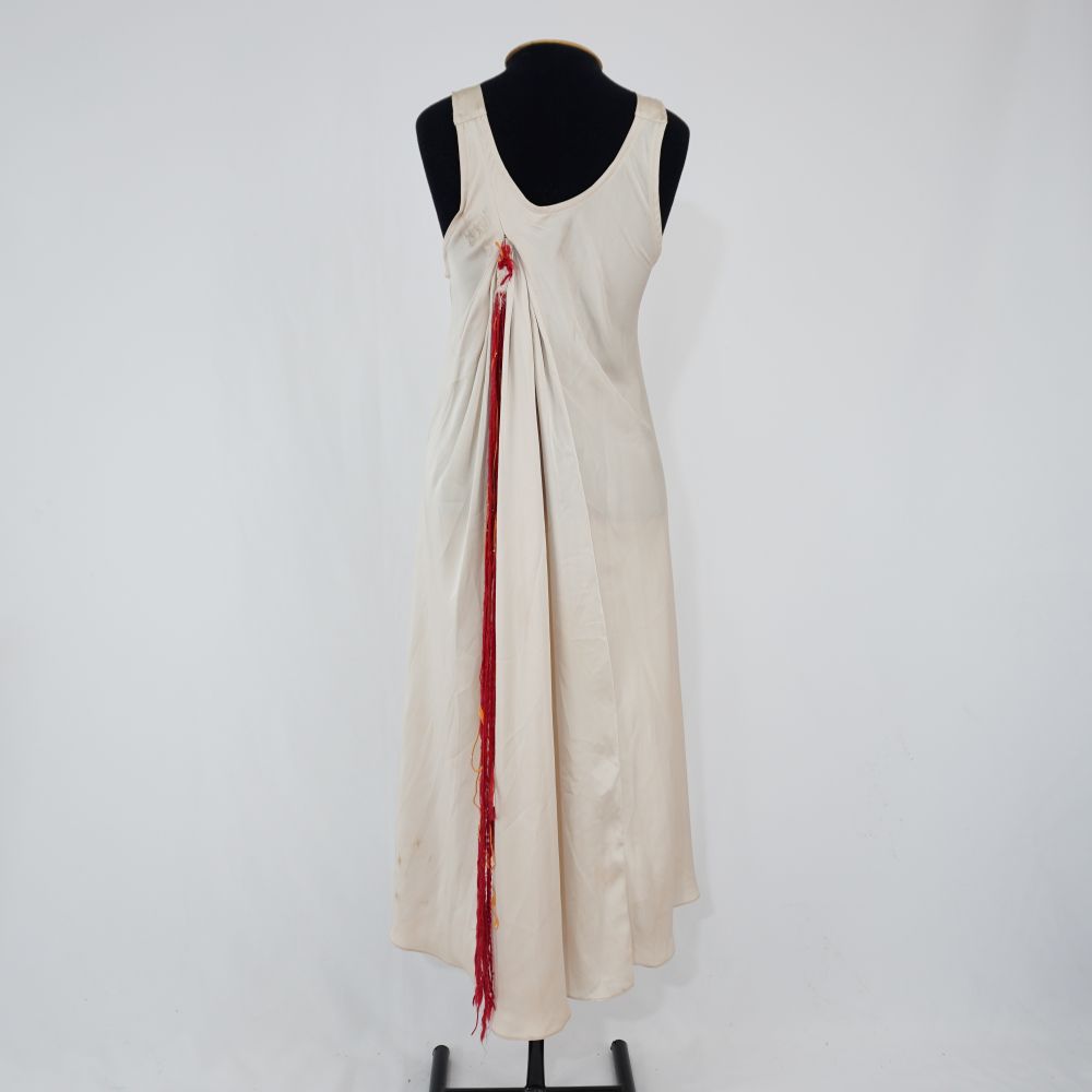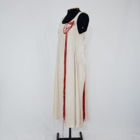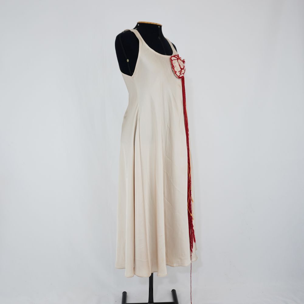 Vestido do coração 2 Voltar U.VF.07.002 (4) U.VF.07.002 (3) U.VF.07.002 (2) Metadados Miniatura Compartilhe Número de TomboU.VF.07.002TítuloVestido do coração 2DescriçãoVestido creme sem manga de modelagem ampla com bordado de coração feito com fios vermelho, laranja e vinho. Prega fêmea logo abaixo do aplique e nas costas. Fios pendentes abaixo do aplique e da prega das costasLocalizaçãoArara 001EspetáculoVento forte para um papagaio subirAno do Espetáculo2007 | 2008Autoria: figurinista/aderecista Flávia Lobo de Felício Quem vestiuSylvia PradoPersonagemMaria das DoresColeçãoColeção RepertórioDimensões do Item - altura x largura (cm)114 x 55Material/Composição do ItemTecido plano sintético levemente acetinadoEstado de ConservaçãoBomData da Catalogaçãonovembro 12, 2025 Continuar navegando Vestido do coração 1 Camisa e preto e branco Voltar para a lista de itens