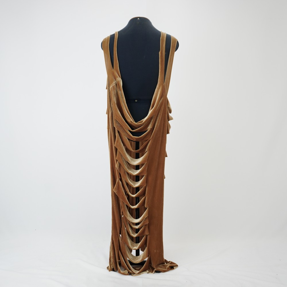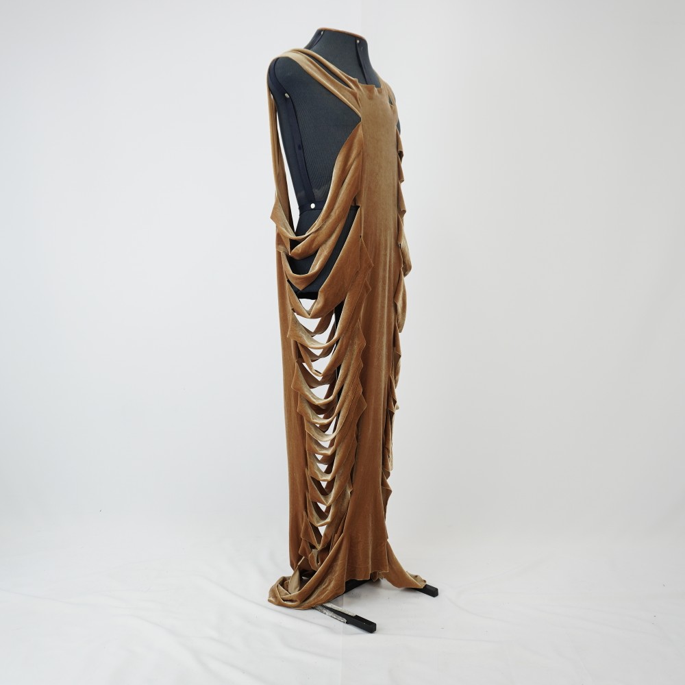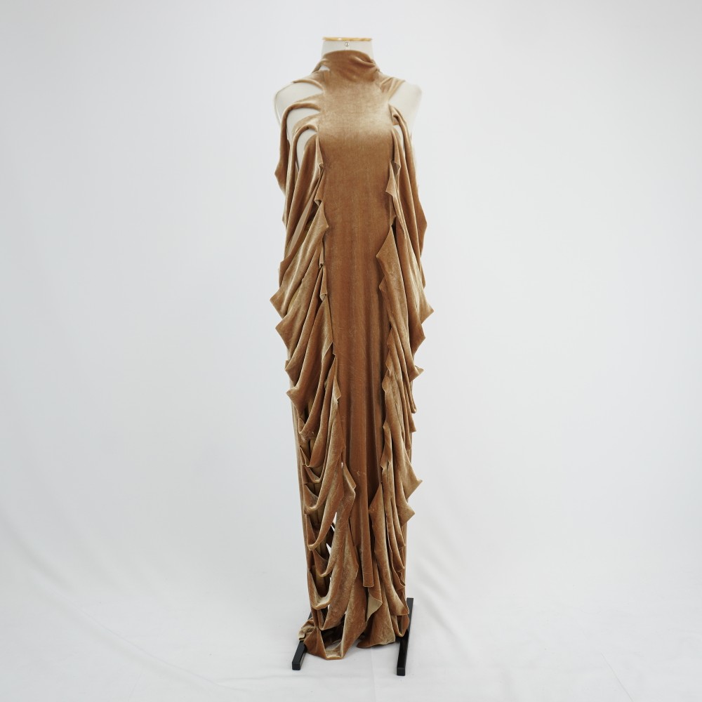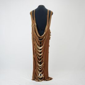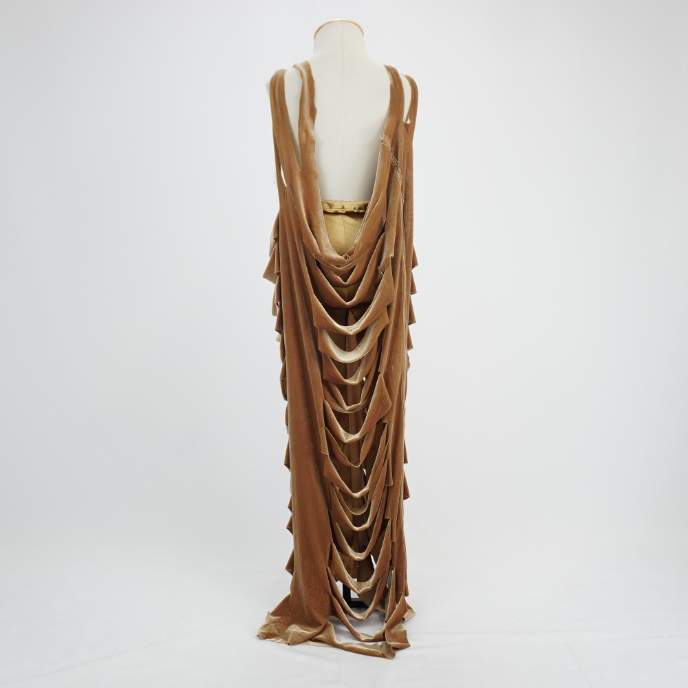 Vestido esqueleto caramelo Voltar U.AC.12.007a (1) U.AC.12.007a (2) U.AC.12.007a (3) U.AC.12.007 (1) U.AC.12.007 (2) U.AC.12.007 (3) Metadados Miniatura Compartilhe Número de TomboU.AC.12.007aTítuloVestido esqueleto carameloDescriçãoVestido sem mangas caramelo longo, cortes a fio horizontais em fileiras paralelas, criando um efeito de camadas que simulam estrutura óssea e caixa torácicaLocalizaçãoArara 022EspetáculoAcordesAno do Espetáculo2012PersonagemCoro de esqueletoColeçãoColeção RepertórioDimensões do Item - altura x largura (cm)127 x 75Material/Composição do ItemMalha de veludo molhado sintéticoEstado de ConservaçãoBomData da Catalogaçãojaneiro 27, 2026 Mais Informações NotasFigurino completo composto por U.AC.12.007a - Vestido esqueleto caramelo U.AC.12.007b - Legging dourada Continuar navegando Vestido esqueleto cinza Vestido esqueleto creme acinzentado Voltar para a lista de itens