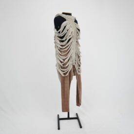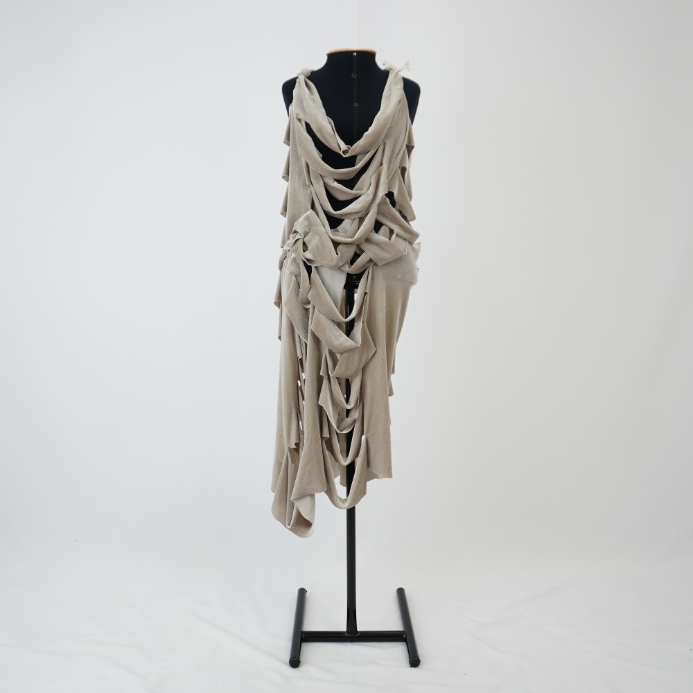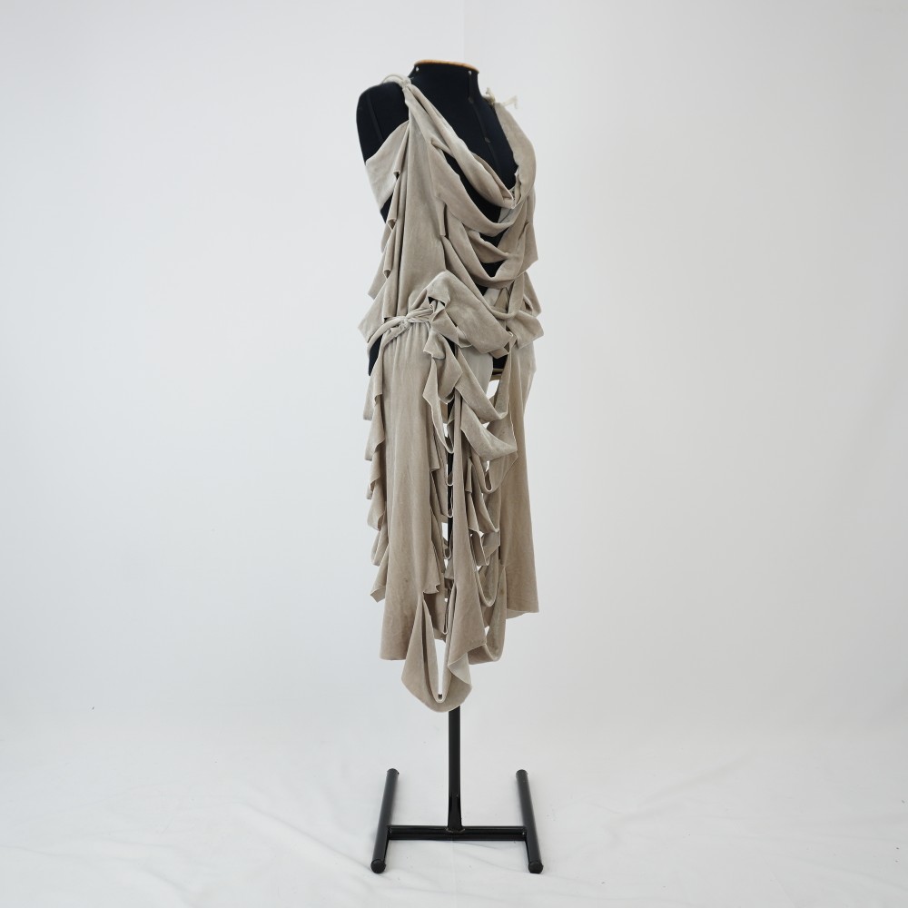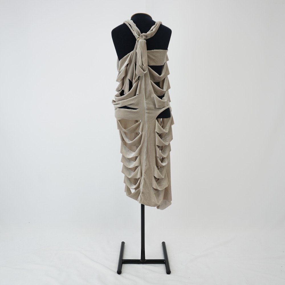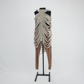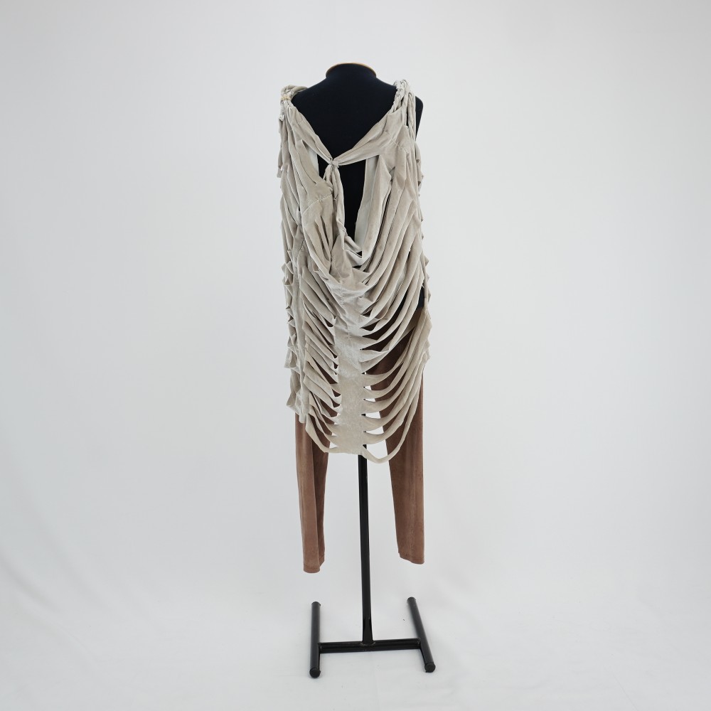 Vestido esqueleto creme acinzentado Voltar U.AC.12.008a (1) U.AC.12.008a (2) U.AC.12.008a (3) U.AC.12.008 (1) U.AC.12.008 (2) U.AC.12.008 (3) Metadados Miniatura Compartilhe Número de TomboU.AC.12.008aTítuloVestido esqueleto creme acinzentadoDescriçãoVestido midi creme acinzentado sem mangas, cortes a fio horizontais em fileiras paralelas criando um efeito de camadas que simulam estrutura óssea de costelas e caixa torácica. Amarração nas costas formando um decote nadador.LocalizaçãoArara 022EspetáculoAcordesAno do Espetáculo2012Autoria: figurinista/aderecista Sonia Ushiyama PersonagemCoro esqueletoColeçãoColeção RepertórioDimensões do Item - altura x largura (cm)120 x 66Material/Composição do ItemMalha de veludo molhado sintéticoEstado de ConservaçãoBomData da Catalogaçãojaneiro 27, 2026 Mais Informações NotasFigurino completo composto por U.AC.12.008a - Vestido esqueleto creme acinzentado U.AC.12.008b - Legging marrom claro; Tem uma duplicata Continuar navegando Vestido esqueleto caramelo Vestido esqueleto creme Voltar para a lista de itens