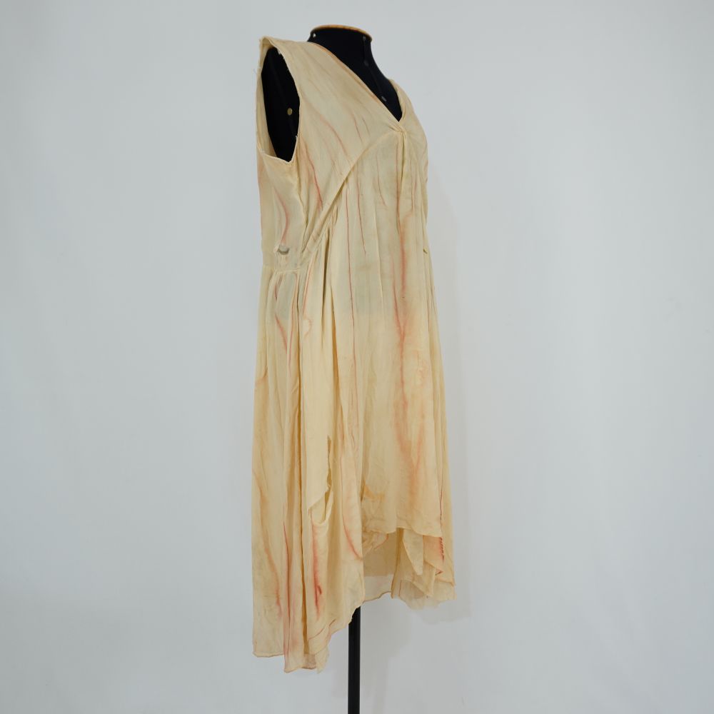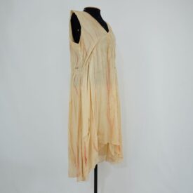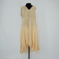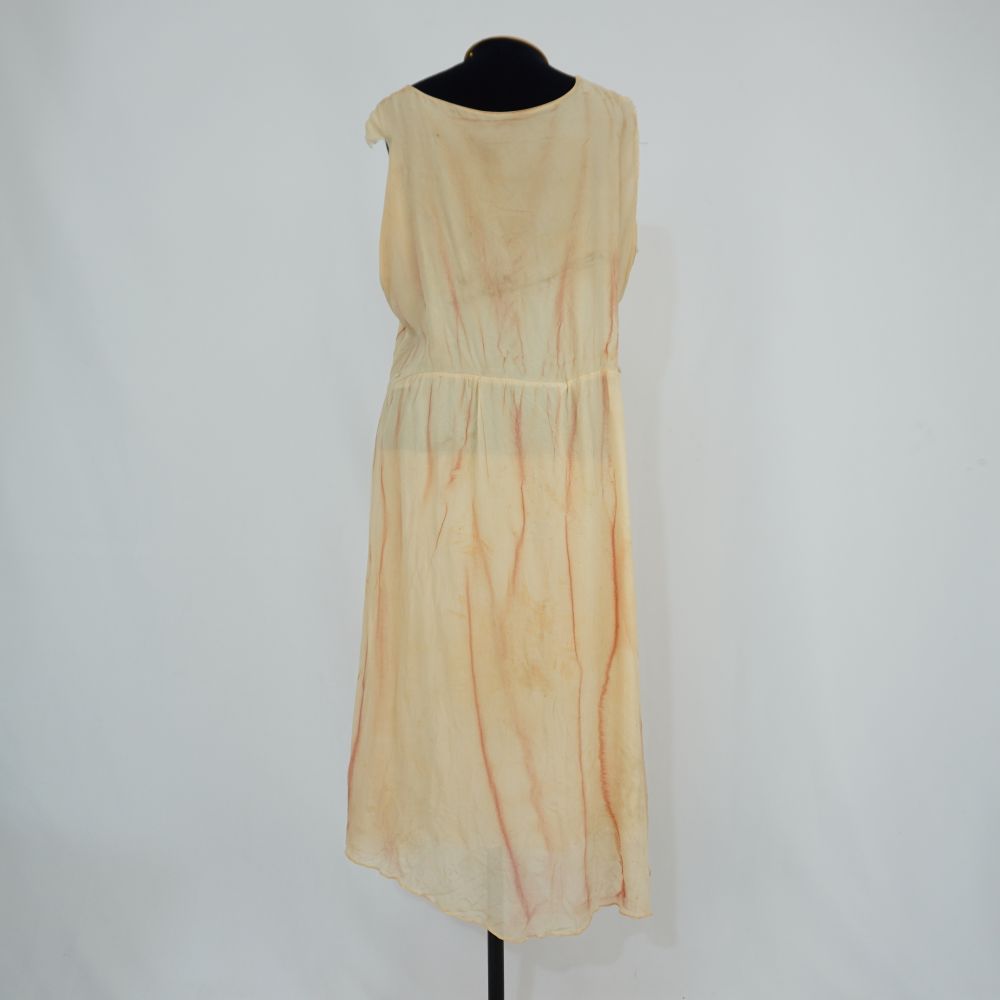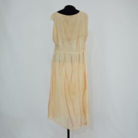 • Vestido midi bege com linhas marrom/vinho Cacilda