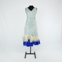 Vestido prata e azul claro Voltar U.MG.94.030 (2) U.MG.94.030 (3) Metadados Miniatura Compartilhe Número de TomboU.MG.94.030TítuloVestido prata e azul claroDescriçãoVestido midi em tecido brocado metalizado prata e azul claro, sem mangas, com aplicação de plumas e penas azul claro e escuro, zíper nas costasLocalizaçãoArara 006Ano do Espetáculo1994 | 1995 | 2015Autoria Caio da Rocha Tipo de Autoria Figurinista ColeçãoColeção RepertórioDimensões do Item Altura120 Largura62 Material/Composição do ItemTecido brocado metalizado e plumasData da Catalogaçãosetembro 16, 2025 Mais Informações Notas"José Nunes creation New York São Paulo" Continuar navegando Colar de rosas vermelhas Cinturão de glitter dourado Voltar para a lista de itens