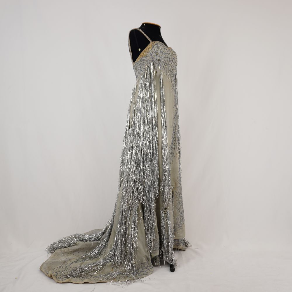 Vestido prata Lua Voltar U.CC.08.008 (2) U.CC.08.008 (3) Metadados Miniatura Compartilhe Número de TomboU.CC.08.008TítuloVestido prata LuaDescriçãoVestido longo com cauda e alças cinza com bordados de miçangas transparentes e vidrilhos azuis, espelhos colados junto com franjas prateadas plásticas, possui bojo, fechamento em zíper duplo nas costas e forrado com tecido lilásLocalizaçãoArara 015EspetáculoCypriano e ChantalanAno do Espetáculo2008Autoria: figurinista/aderecista Sonia Ushiyama PersonagemLuaColeçãoColeção RepertórioDimensões do Item - altura x largura (cm)188 x 76Material/Composição do ItemCetim (forro), tecido plano sintéticoEstado de ConservaçãoRuimData da Catalogaçãooutubro 16, 2025 Continuar navegando Echarpe cinza com franjas Quimono dupla face dourado e rosa Rainha Mabe Voltar para a lista de itens
