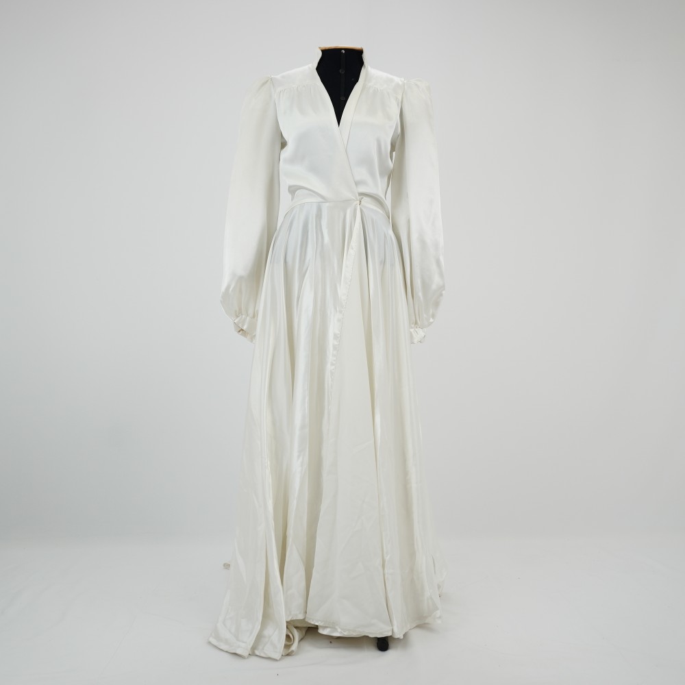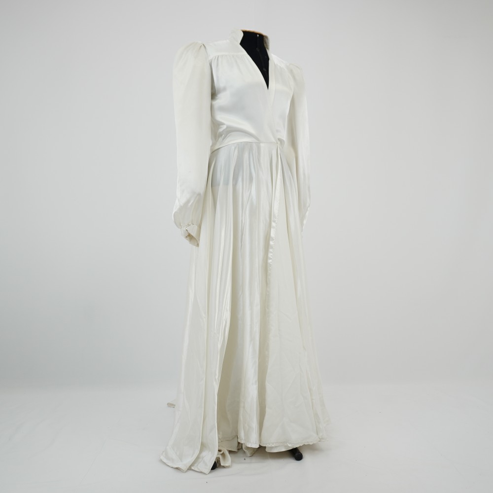 Vestido robe branco Vera Voltar U.PR.01.091 (1) U.PR.01.091a (1) U.PR.01.091a (2) U.PR.01.091a (3) Metadados Miniatura Compartilhe Número de TomboU.PR.01.091aTítuloVestido robe branco VeraDescriçãoVestido tipo robe branco com cauda. Decote "v" profundo. Manga longa bufante com elástico no punho. Pala no busto e nas costas, franzido na pala. Pé de gola. Fechamento em colchete de alfaiate na cintura.LocalizaçãoSala 003Quem vestiuVera ValdezColeçãoColeção RepertórioDimensões do Item - altura x largura (cm)183 x 95Material/Composição do ItemTecido plano cetim sintéticoEstado de ConservaçãoBomData da Catalogaçãojaneiro 15, 2026 Mais Informações NotasFigurino completo composto por U.PR.01.091b U.PR.01.091c Continuar navegando Acessório figurino Banquete Faixa de plumas Voltar para a lista de itens