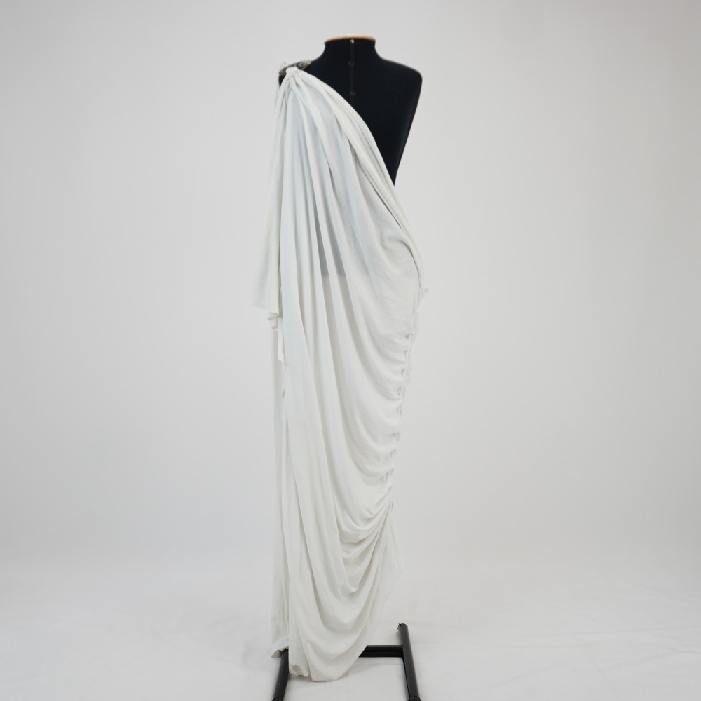 Vestido túnica branca com fivela e drapeado Voltar U.BQ.09.044 (1) U.BQ.09.044 (2) U.BQ.09.044 (3) U.BQ.09.044 (4) U.BQ.09.044 (5) Metadados Miniatura Compartilhe Número de TomboU.BQ.09.044TítuloVestido túnica branca com fivela e drapeadoDescriçãoVestido túnica branca, longuete, um ombro só com fivela cobre ornamentada com três pedras aplicadas, uma lateral aberta e a outra com drapeados com faixa de tecido centralLocalizaçãoArara 017EspetáculoO BanqueteAno do Espetáculo2009Autoria: figurinista/aderecista Sylvia Prado ColeçãoColeção RepertórioDimensões do Item - altura x largura (cm)146 x 70Material/Composição do ItemMalha mista, sintético com algodãoEstado de ConservaçãoRegularData da Catalogaçãofevereiro 3, 2026 Continuar navegando Blusa túnica branca com fivela e fita branca Vestido túnica branca com fita roxa Voltar para a lista de itens