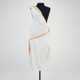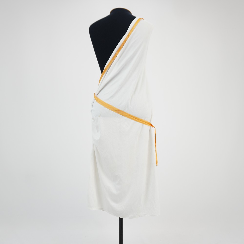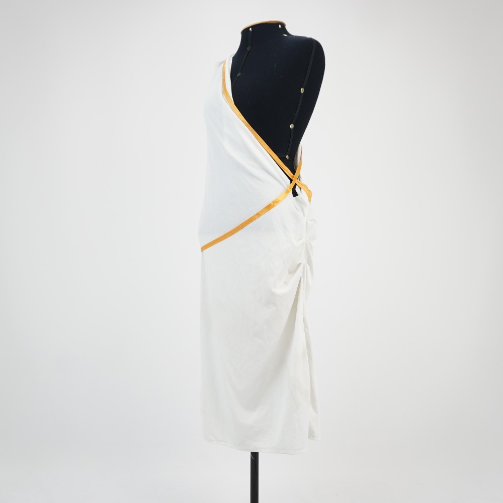 • Vestido túnica branca e fita laranja
