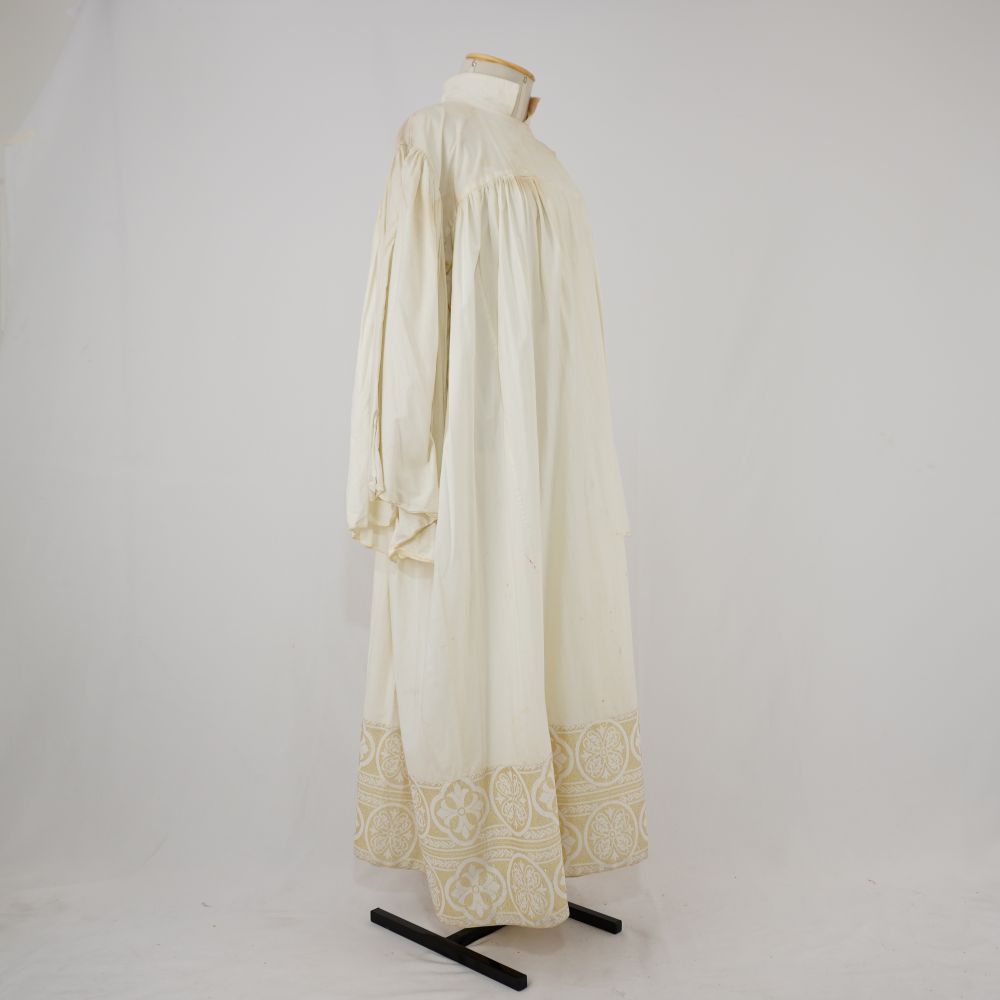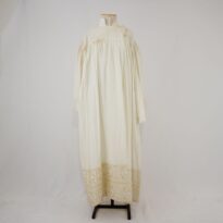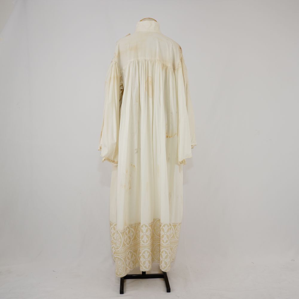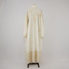 Vestido/túnica longo com mangas offwhite e barra em jacquard Voltar U.OB.07.022 (2) U.OB.07.022 (3) Metadados Miniatura Compartilhe Número de TomboU.OB.07.022TítuloVestido/túnica longo com mangas offwhite e barra em jacquardDescriçãoVestido/túnica longo com mangas longas amplas, franzido na cava, offwhite, gola alta, fechamento com transpasse em velcro em ambaos os ombros, barra em jacquard creme com douradoLocalizaçãoArara 014EspetáculoBacantes | Cacilda!! | Os BandidosAno do Espetáculo2007 | 2009 | 2016Quem vestiuMarcelo DrummondPersonagemPadre Marcelo PicãoColeçãoColeção RepertórioDimensões do Item - altura x largura (cm)130 x 69Material/Composição do ItemJacquard e tecido planoEstado de ConservaçãoBomData da Catalogaçãooutubro 16, 2025 Mais Informações NotasEscrito "Marcelo". Também foi usado no coro de coroinhas de Cacilda!! e em Bacantes de 2016 Continuar navegando Vestido longo com manga offwhite Vestido/túnica longa com manga offwhite Voltar para a lista de itens