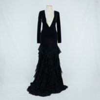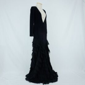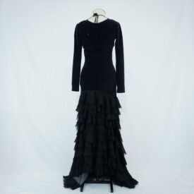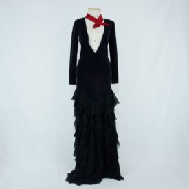 Vestido Veludo Preto Voltar U.CS.01.022a (2) U.CS.01.022a (3) Figurino completo - U.CS.01.022 (1) Figurino completo -U.CS.01.022 (2) Figurino completo -U.CS.01.022 (3) Metadados Miniatura Compartilhe Número de TomboU.CS.01.022aTítuloVestido Veludo PretoDescriçãoVestido longo preto de manga longa com ombreiras, decote nas costas e cauda; com tiras de amarração no ombroLocalizaçãoSala 003EspetáculoCacildasColeçãoColeção RepertórioDimensões do Item - altura x largura (cm)155 x 85Material/Composição do ItemMalha de veludo e chiffonEstado de ConservaçãoRegularData da Catalogaçãonovembro 13, 2025 Mais Informações NotasFigurino completo composto por: Vestido Veludo Preto - U.CS.01.022a Lenço para pescoço vermelho - U.CS.01.022b Continuar navegando Blazer Preto e branco Walmor e Cacilda Short saia preto e branco Voltar para a lista de itens