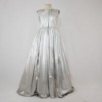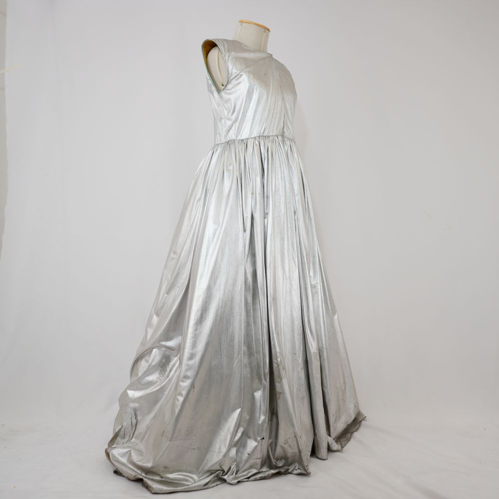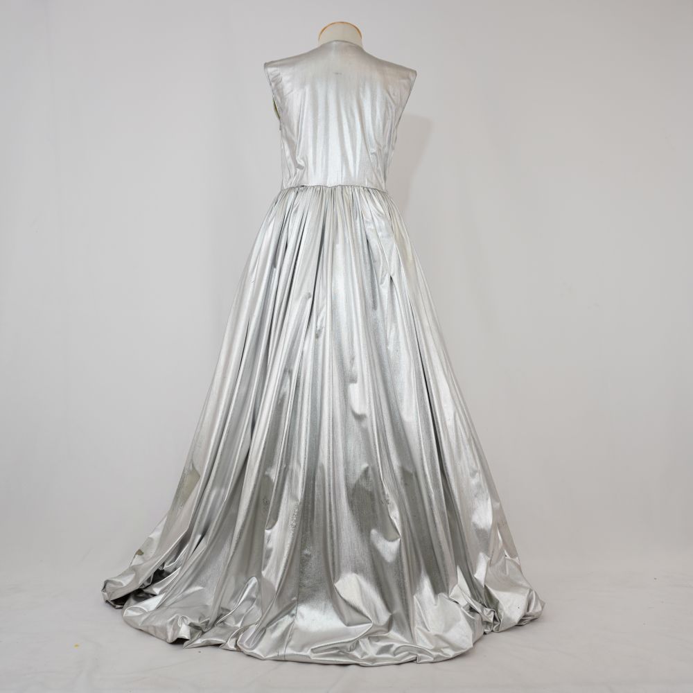 Vestido Virgem de Prata Boca de Ouro Voltar U.BO.99.012 (2) U.BO.99.012 (3) Metadados Miniatura Compartilhe Número de TomboU.BO.99.012TítuloVestido Virgem de Prata Boca de OuroDescriçãoVestido longo sem mangas em lamê prata, saia volumosa e com enchimento de celofane furtacor e TNT amarelo, fechamento em velcro na frenteLocalizaçãoArara 013EspetáculoBoca de OuroAno do Espetáculo1999 | 2000 | 2001Autoria: figurinista/aderecista Olintho Malaquias PersonagemVirgem de PrataColeçãoColeção RepertórioDimensões do Item - altura x largura (cm)190 x 105Material/Composição do ItemMalha lamê, TNT, plástico celofaneEstado de ConservaçãoRegularData da Catalogaçãooutubro 16, 2025 Continuar navegando Vestido longo Virgem de Ouro Robê longo dupla face Guigui Voltar para a lista de itens