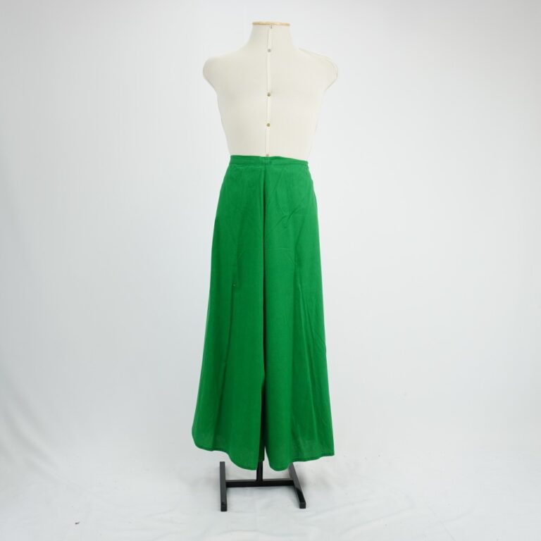 by Michelle Araujo Leia Mais...Calça envelope verde com amarração na cintura e barra arredondada