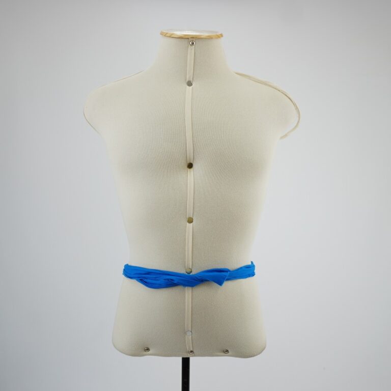 by Michelle Araujo Leia Mais...Uma faixa de tecido azul médio cortada a fio