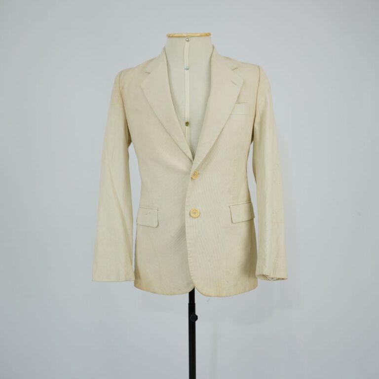 by Michelle Araujo Leia Mais...Blazer bege com três bolsos frontais, fechamento em botão de plástico e três bolsos internos