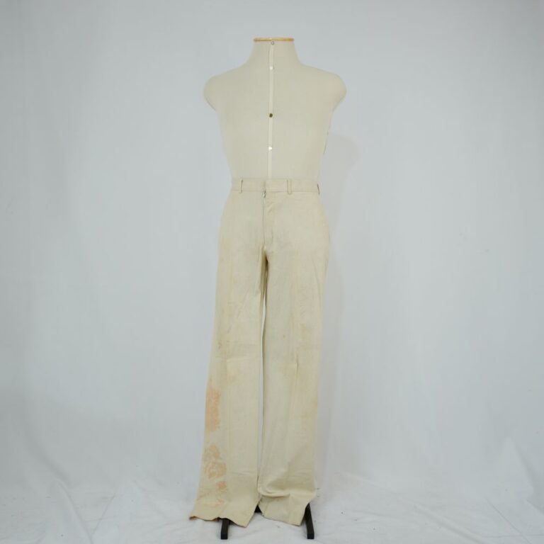 by Michelle Araujo Leia Mais...Calça bege de alfaiataria com dois bolsos frontais e dois bolsos na parte de trás, fechamento em zíper e botão