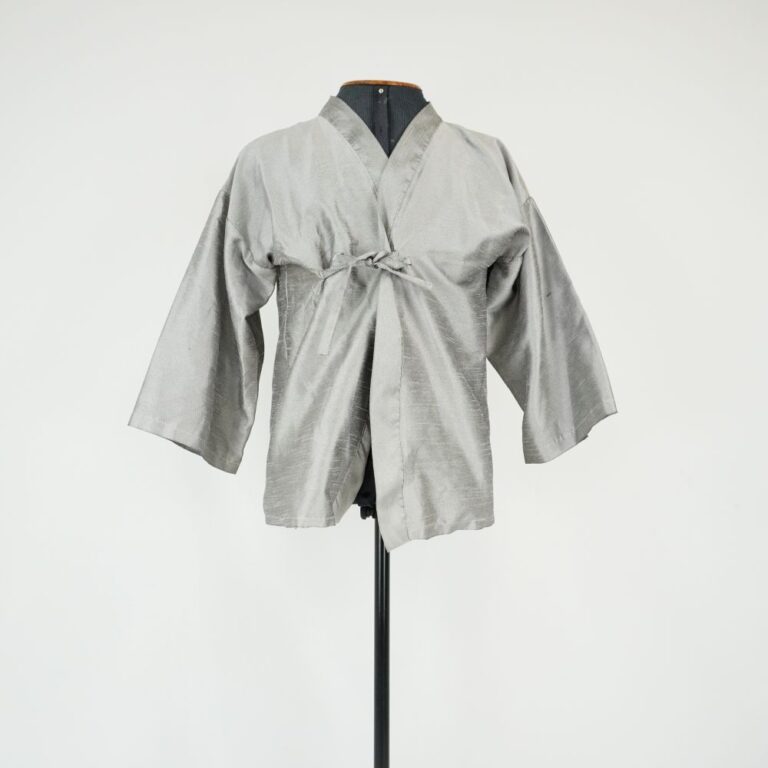 by Michelle Araujo Leia Mais...Blusa tipo kimono prateado de fechamento frontal por amarração