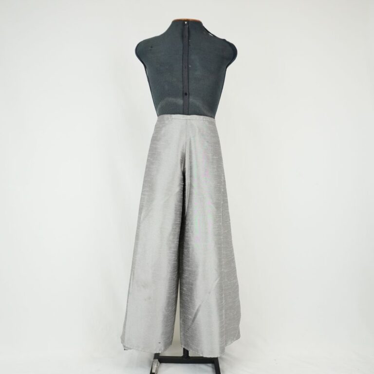 by Michelle Araujo Leia Mais...Calça prateada tipo envelope com fechamento por amarração