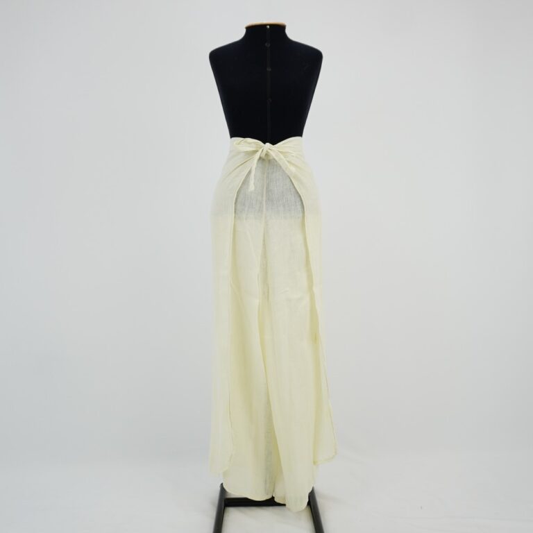 by Michelle Araujo Leia Mais...Calça envelope amarela clara com amarração na cintura e barra arredondada