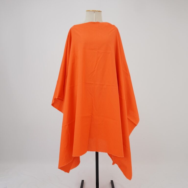 Capa/Túnica de modelagem ampla na cor laranja, abertura para passagem da cabeça no meio do tecido e todas as barras a fio
