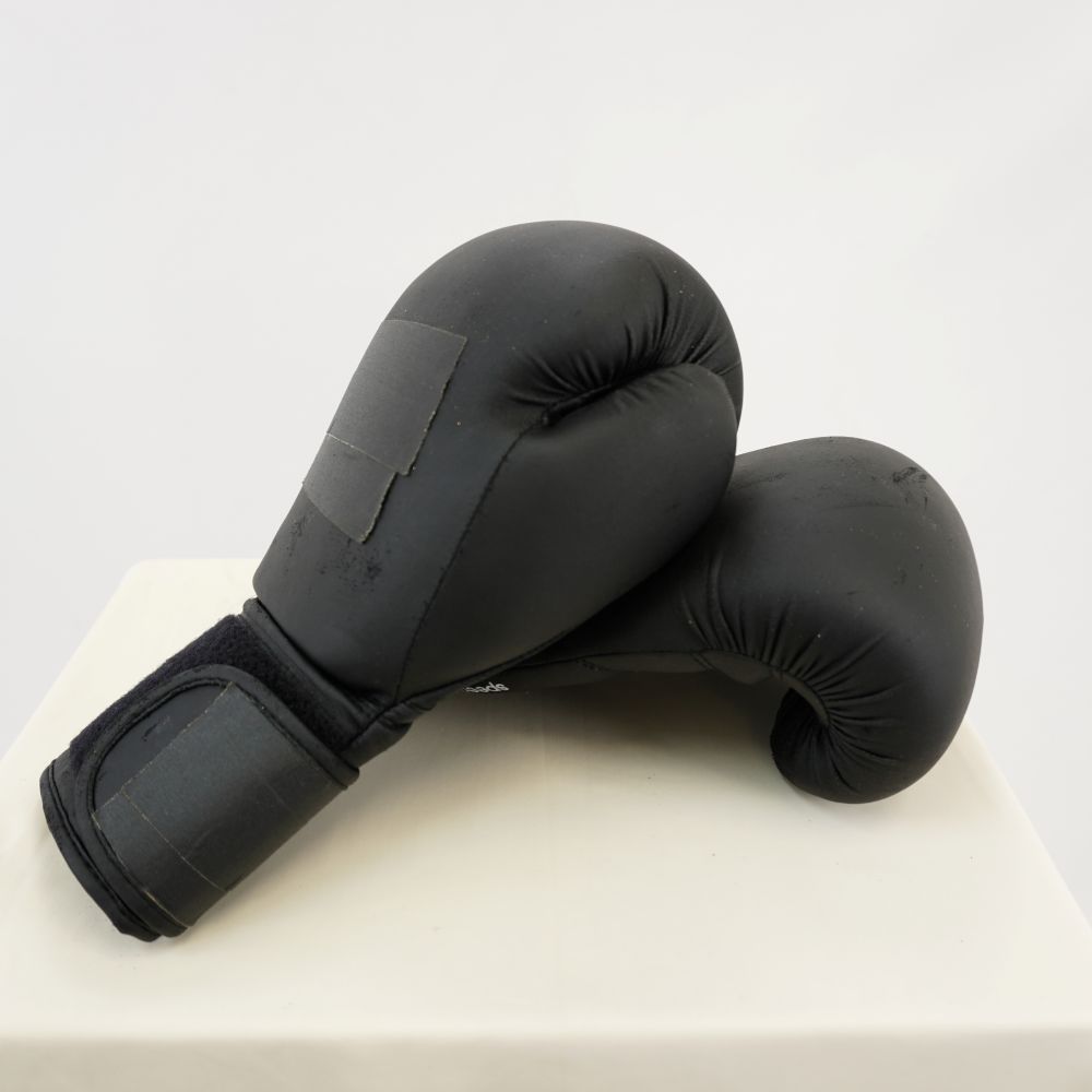 by Michelle Araujo Leia Mais...Luva de boxing preta com fechamento em velcro, com fita adesiva preta no dorso e na faixa de fechamento no punho
