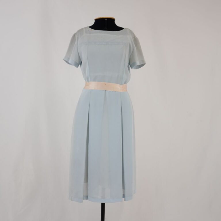 by Michelle Araujo Leia Mais...Vestido curto, manga curta, forro e decote com tecido branco com azelhas e botão de plástico de pérolas, faixa de cetim rose na cintura e duas pregas no...
