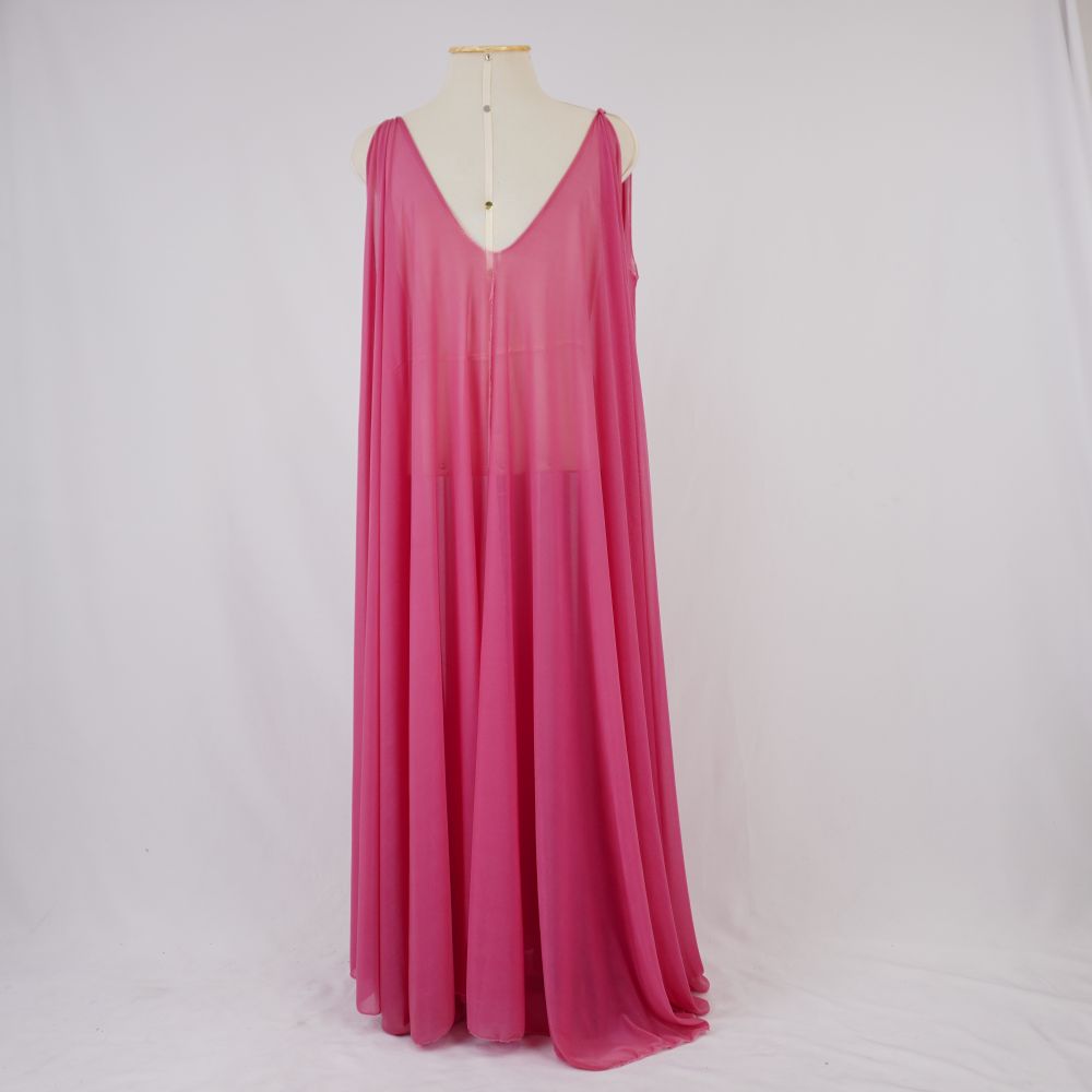 by Michelle Araujo Leia Mais...Túnica rosa com decote em gola V, duas faixas afixadas nos ombros e acabamento de overlock