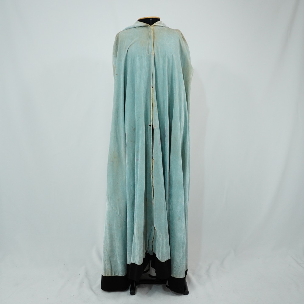 by Michelle Araujo Leia Mais...Capa com capuz azul bebê em camurça sintética, com recorte e barra em camurça preta, fechamento frontal em velcro