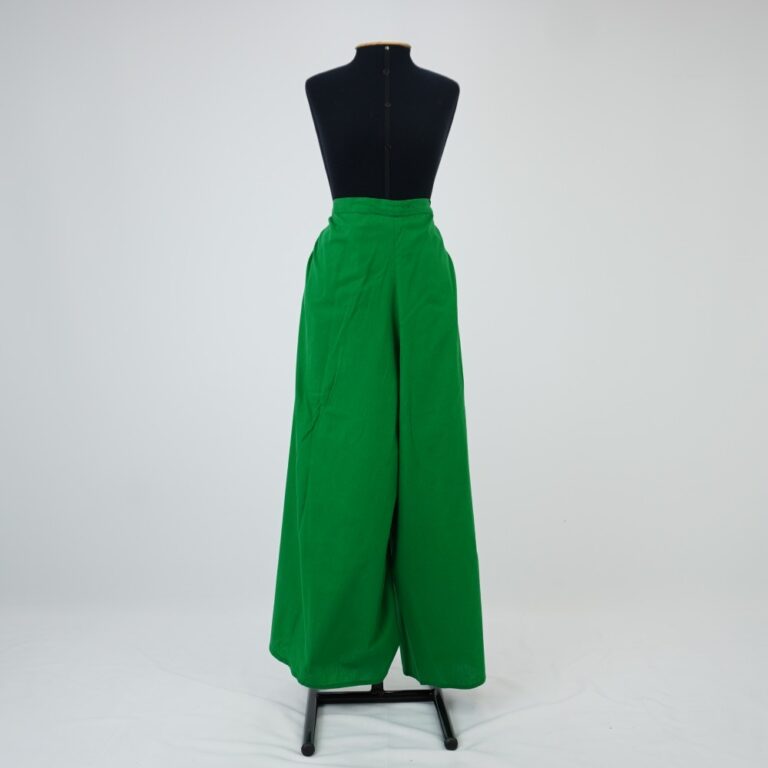 by Michelle Araujo Leia Mais...Calça envelope verde com amarração na cintura e barra arredondada