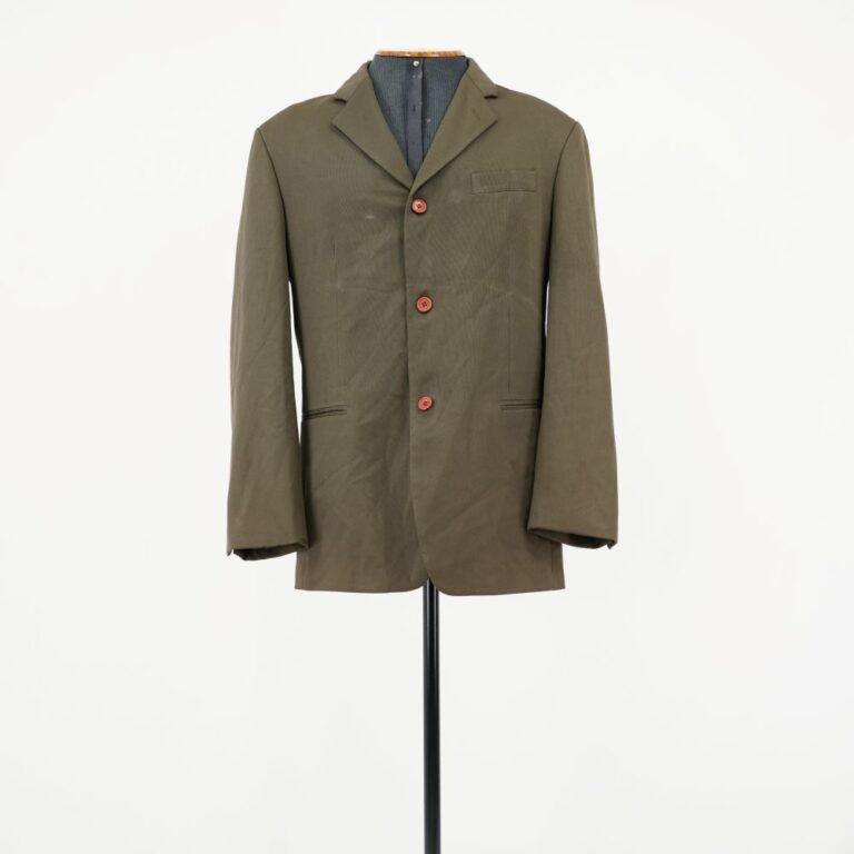 by Michelle Araujo Leia Mais...Blazer cinza com forro verde, três bolsos internos e três externos, fechamento em botão de plástico