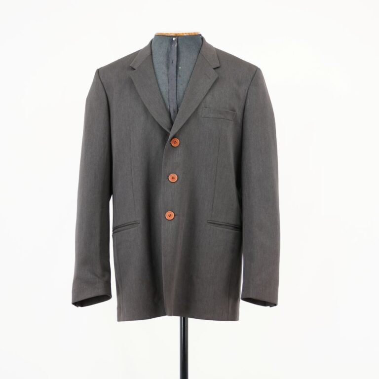 by Michelle Araujo Leia Mais...Blazer cinza chumbo, três bolsos internos e três externos, fechamento em botões de plástico