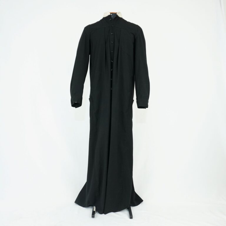 by Michelle Araujo Leia Mais...Batina preta Herchcovitch: Alexandre com gola padre branca fina, botões pequenos de plástico sendo um branco e quatorze botões pretos, bolso superior do lado esquerdo e bolso faca...