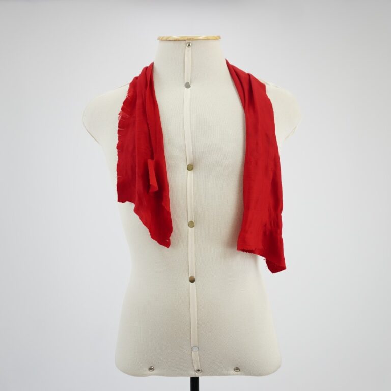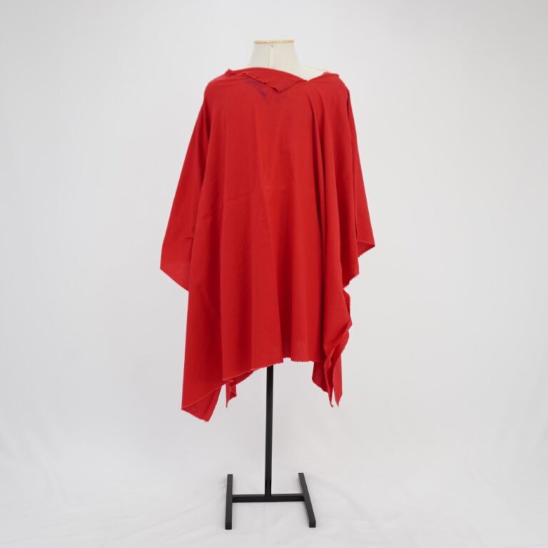 Túnica de modelagem ampla na cor vermelha. Abertura para passagem da cabeça no meio do tecido e todas as barras a fio.