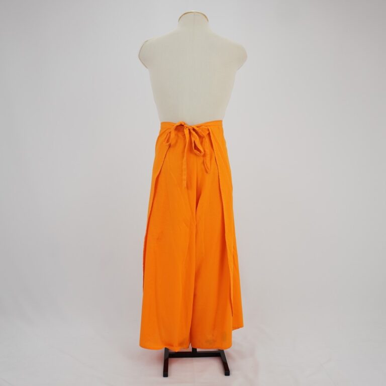by Michelle Araujo Leia Mais...Calça envelope laranja com amarração na cintura e barra arredondada
