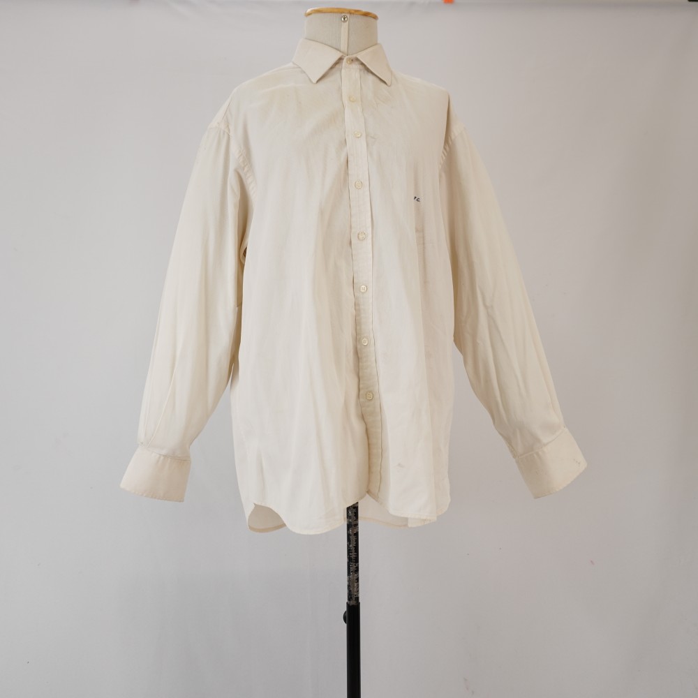 Camisa social off white, tecido textura listrada fina, bordado azul marinho “F.C” na frente superior esquerda, fechamento frontal com oito botões. Dois botões em cada punho e duas...