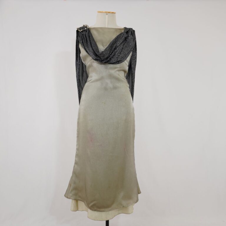 Vestido midi sem mangas com forro em cetim gelo e vestido em organza com brilho prateado, duas pregas de cada lado do busto para cintura. Faixa de lurex...