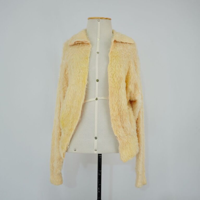 by Michelle Araujo Leia Mais...Casaco bege de lã peluda com gola e abertura frontal