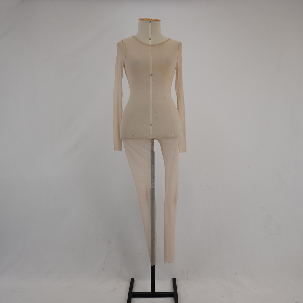 by Michelle Araujo Leia Mais...Macacão bege 2ª pele, manga longa ajustado ao corpo, barra a fio e acabamento de galão no decote