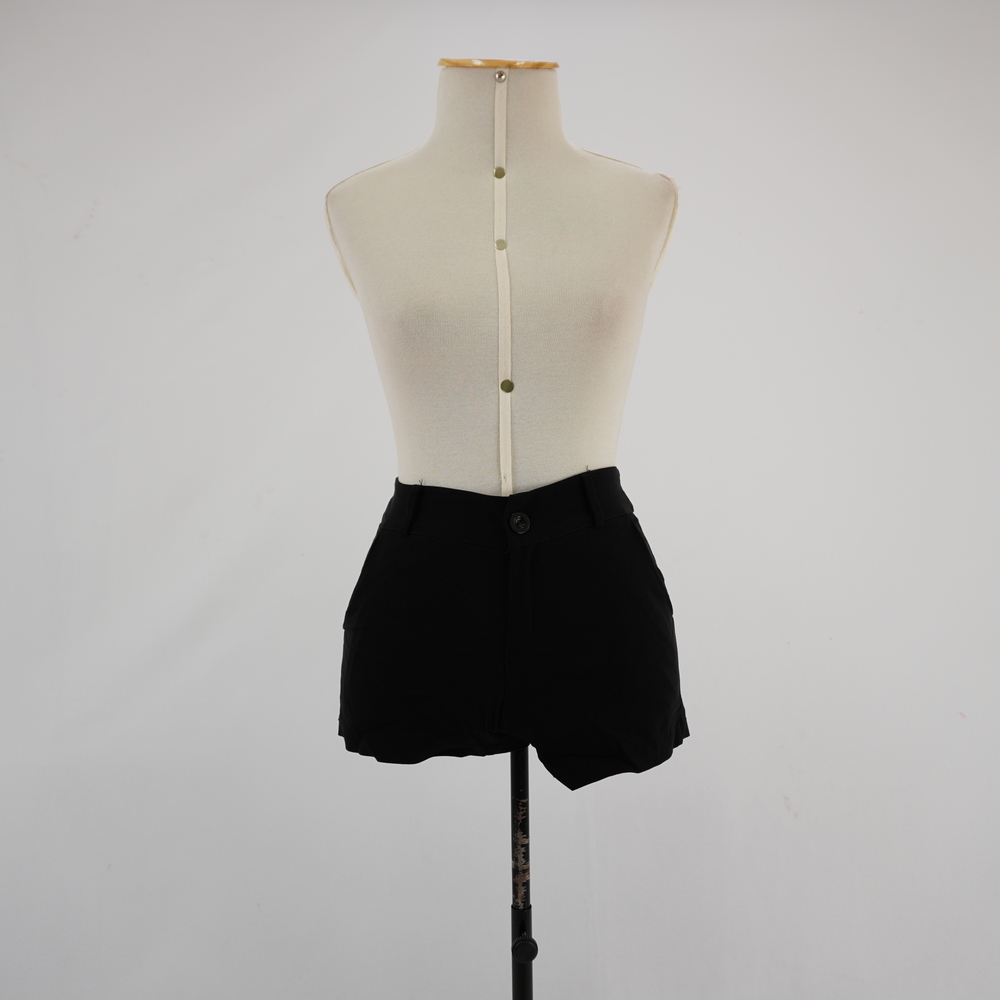by Michelle Araujo Leia Mais...Shorts preto curto, dois bolsos laterais, duas pences traseiras, cinco passantes e fechamento com zíper e botão