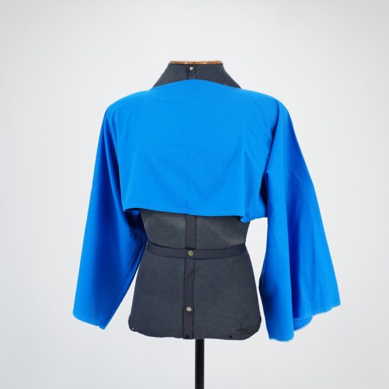 Túnica cropped azul manga longa. Barra da manga a fio.