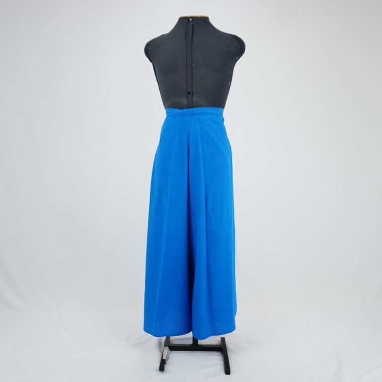 by Michelle Araujo Leia Mais...Calça envelope azul médio com amarração na cintura e barra arredondada