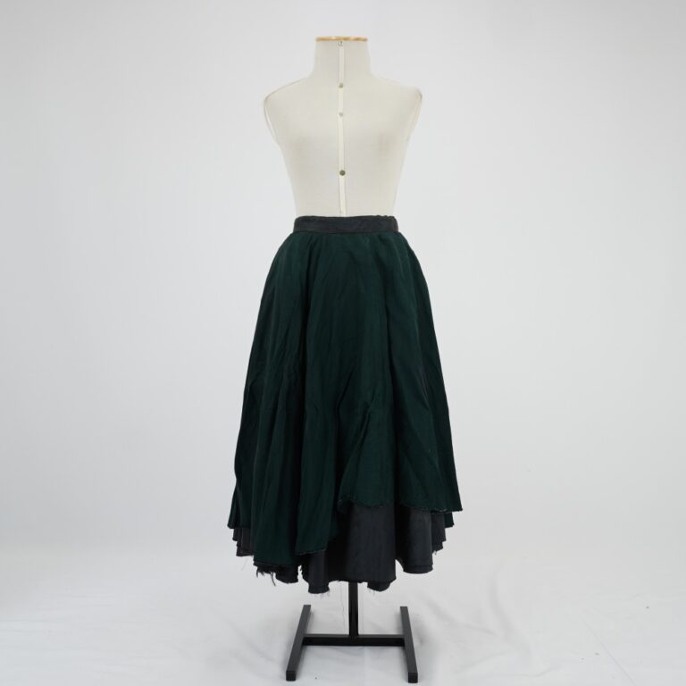 Saia midi godê com três camadas sendo a externa verde musgo e as internas pretas. Acabamento em overlock. Cós preto com fechamento em ziper e dois colchetes nas...