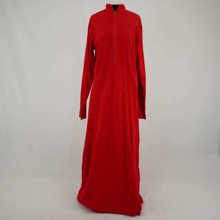 by Michelle Araujo Leia Mais...Vestido longo com mangas longas em tecido panamá simples vermelho, possui gola padre e fechamento de zíper frontal.