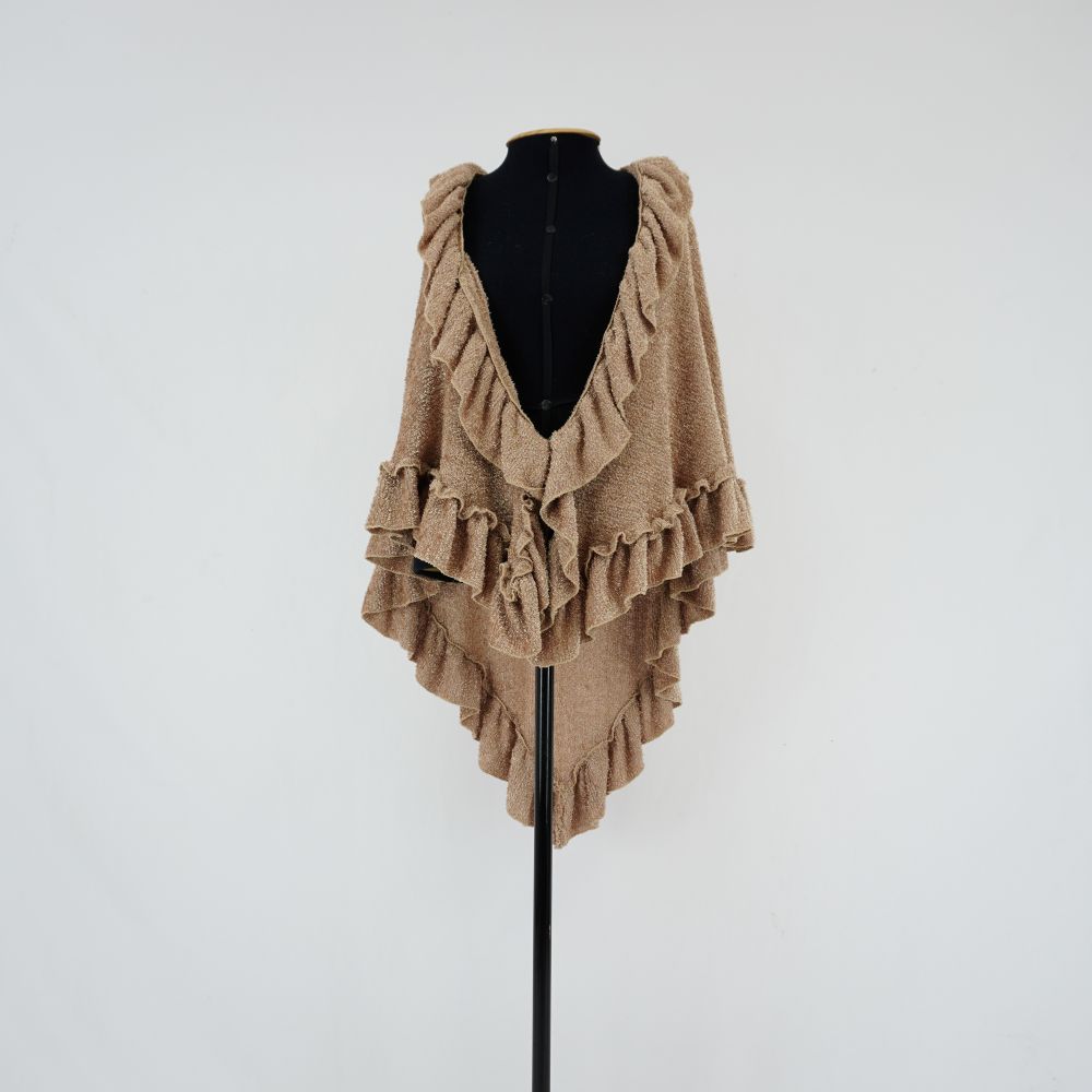 by Michelle Araujo Leia Mais...Chale de malha de tricot, marrom clara em formato triangular com babados em todas as barras