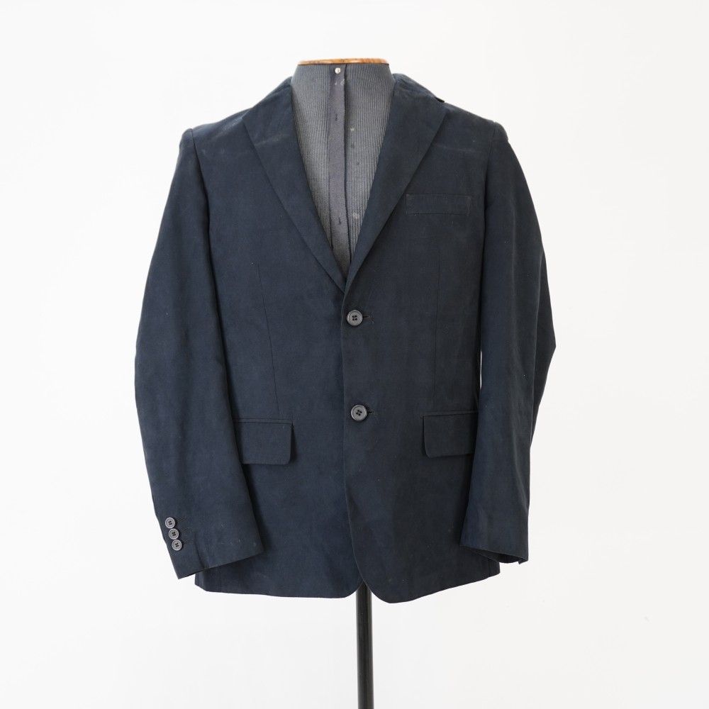 by Michelle Araujo Leia Mais...Blazer azul marinho com toque acamurçado, forro do corpo azul marinho e forro da manga branco com listras verticais pretas, três bolsos externos e três internos, fechamento com...