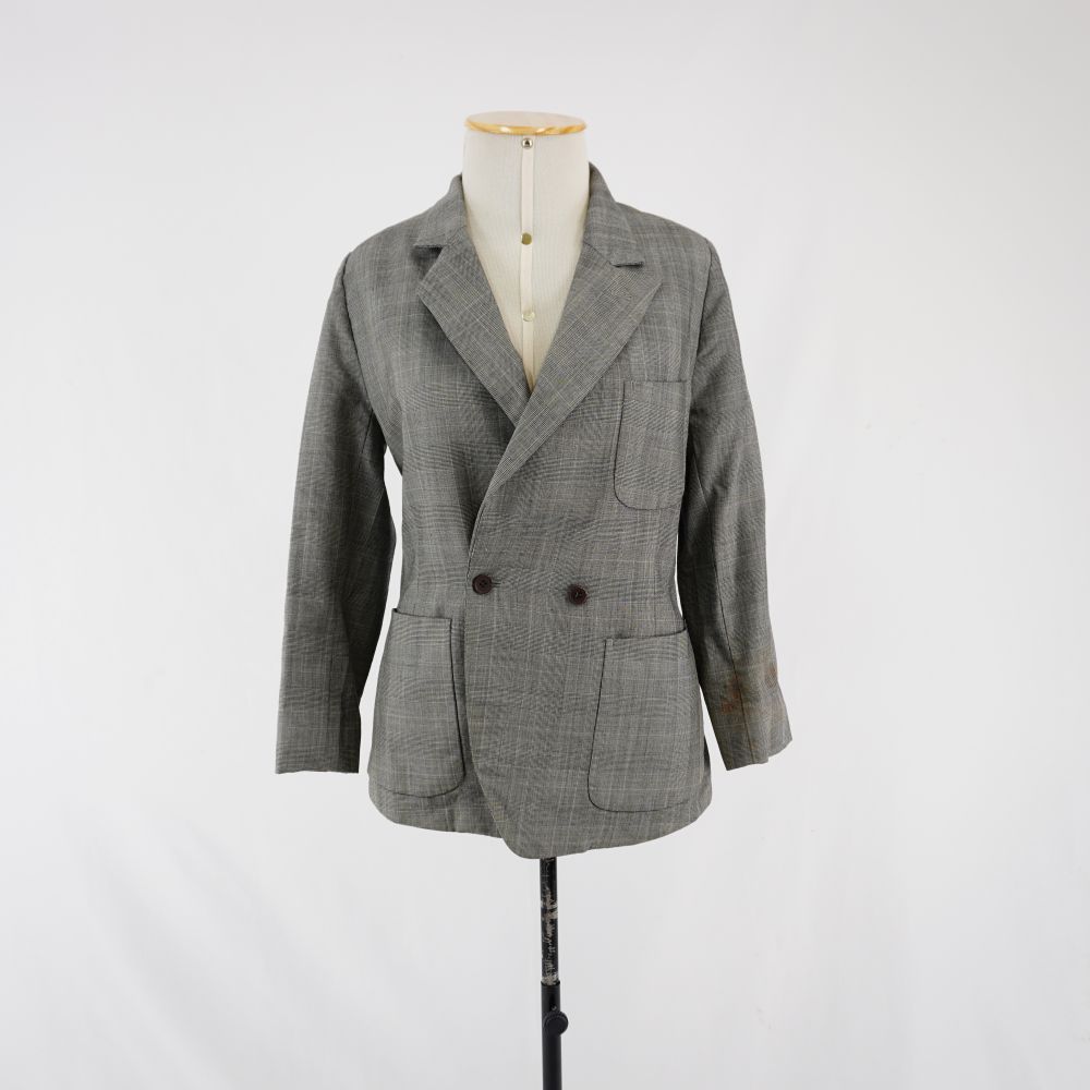 by Michelle Araujo Leia Mais...Blazer padronagem Príncipe de Galles off white, preto e azul, três bolsos aplicados frontais abotoamento duplo com botões de plástico e três botões ornamentais de cada lado dos...