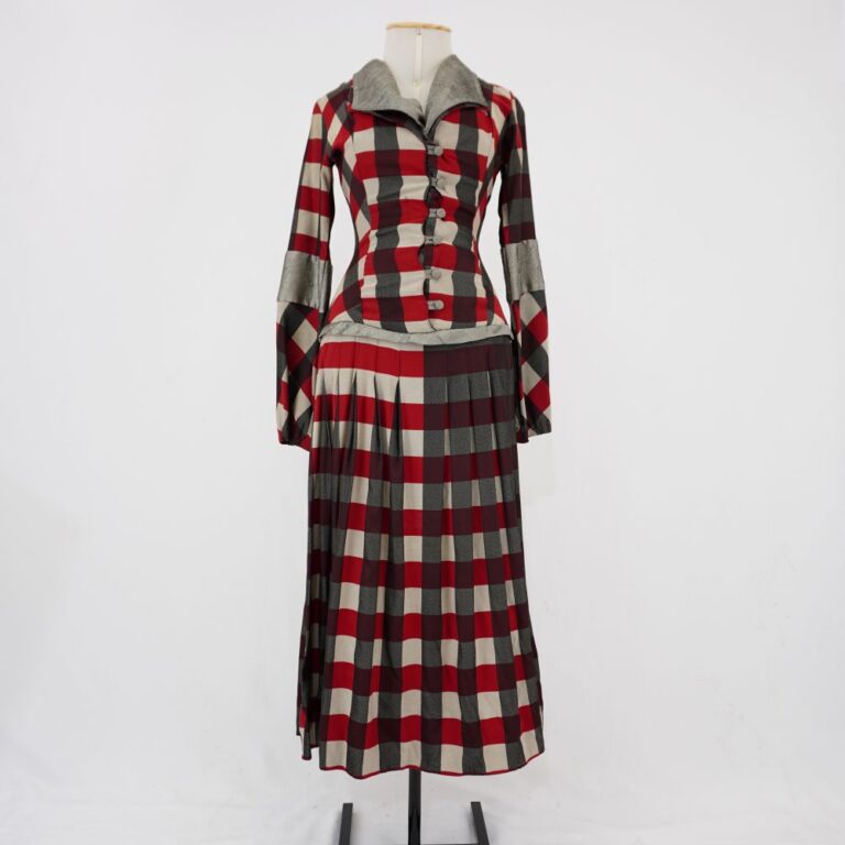 by Michelle Araujo Leia Mais...Vestido longuete com manga longa com saia pregueada. Peito de tecido quadriculado vermelho, bege e preto com detalhes na gola e lapela removível. Azelhas, cotovelo e cintura em...