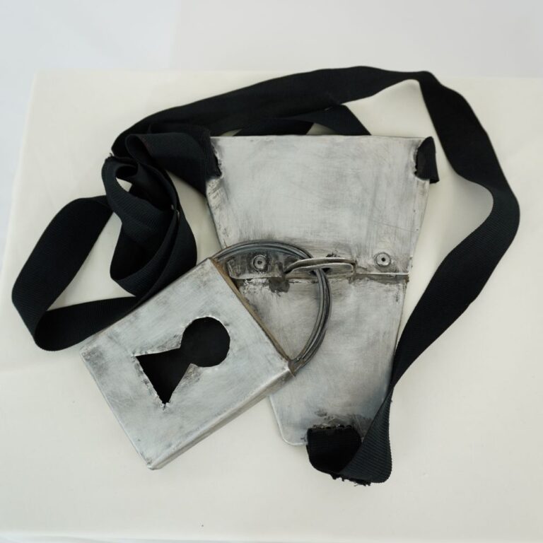 by Michelle Araujo Leia Mais...Cinto de castidade em alumínio com rebites e cadeado, elástico para vestir