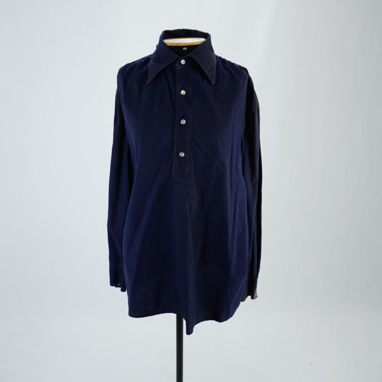 by Michelle Araujo Leia Mais...Camisa bata azul escuro com quatro botões frontais da gola até o meio da peça, manga longa, ampla na barra e dois botões na manga.