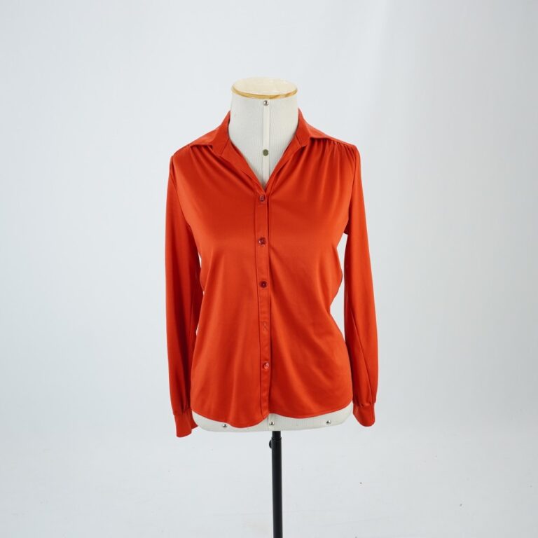 by Michelle Araujo Leia Mais...Camisa vermelha com detalhes franzidos no ombro frontal, nos punhos e nas costas, fechamento com cinco botões