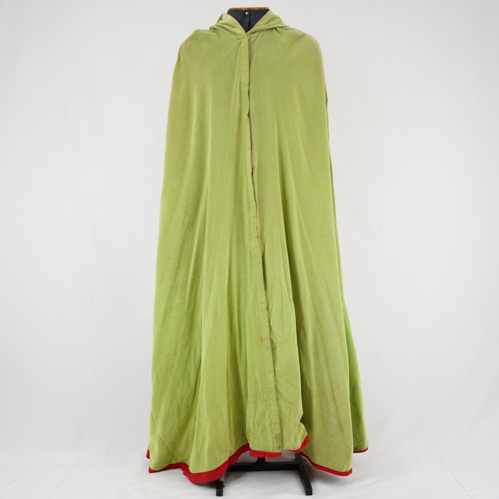 by Michelle Araujo Leia Mais...Capa com capuz verde claro com recorte lateral de mesma cor, barra e recorte das costas em vermelho. Fechamento frontal em velcro.