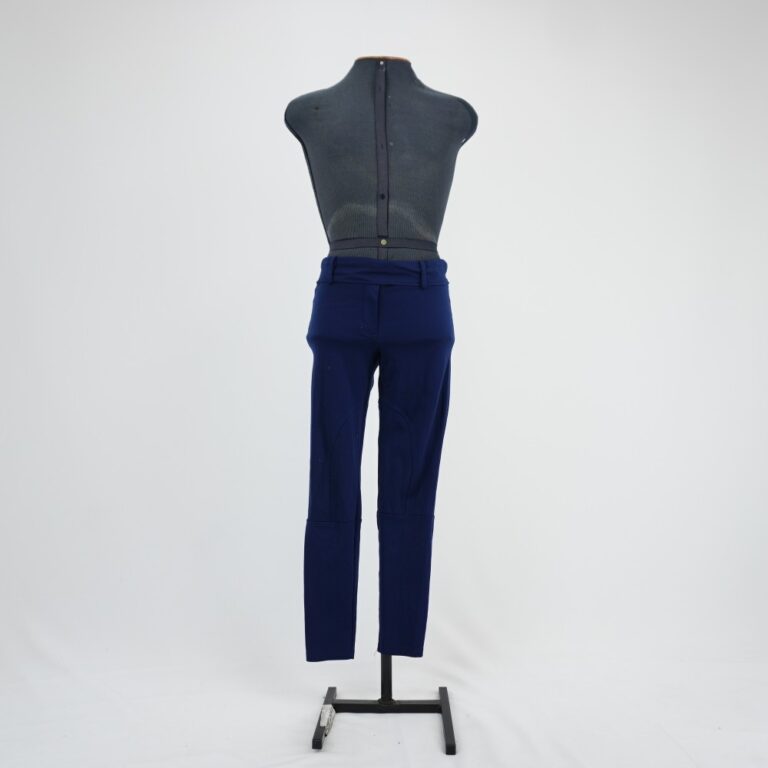 by Michelle Araujo Leia Mais...Legging azul marinho, modelagem de calça com cós largo com passador e imitação de braguilha.