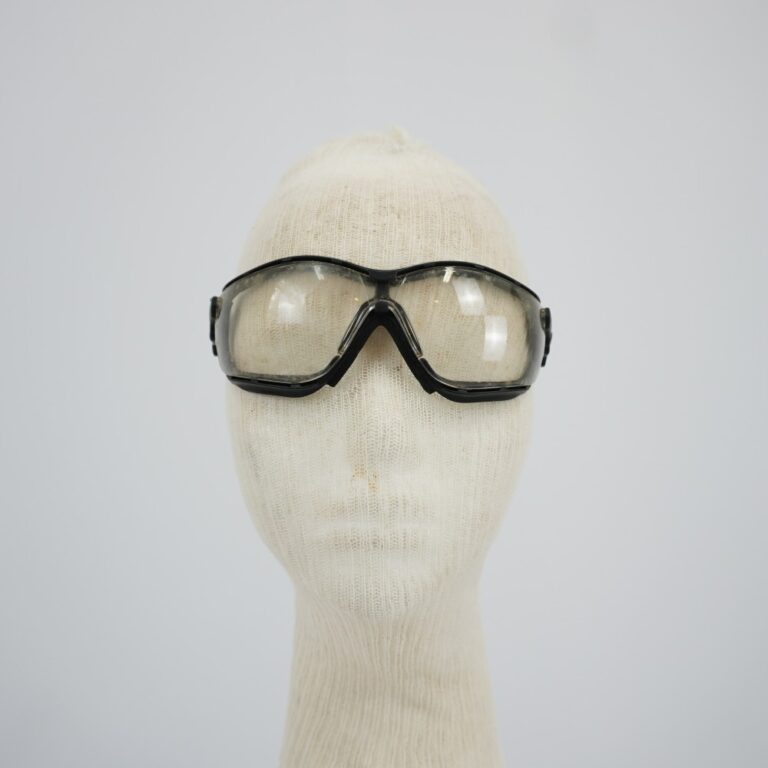by Michelle Araujo Leia Mais...Óculos de proteção transparente com laterais de borracha preta e elástico regulável para a cabeça.